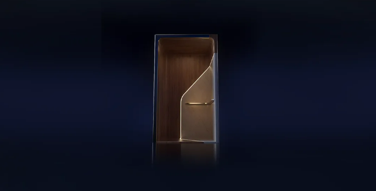 汲取豪华超跑的优雅动感,与航海工业美学精髓,水平流动曲线与渐变弧度精妙运用,在有限立体空间中实现视觉容量的最大化。复刻豪华游艇挡风玻璃的流畅线条,兼顾极致美学与实用功能。步入轿厢,温暖尊贵的氛围瞬间环抱,恍若置身顶级跑车或豪华游船的私密座舱。多样化的表面处理工艺,轻松适配各种家居风格,动感与纯净达致完美平衡,实现形式与功能的和谐统一。